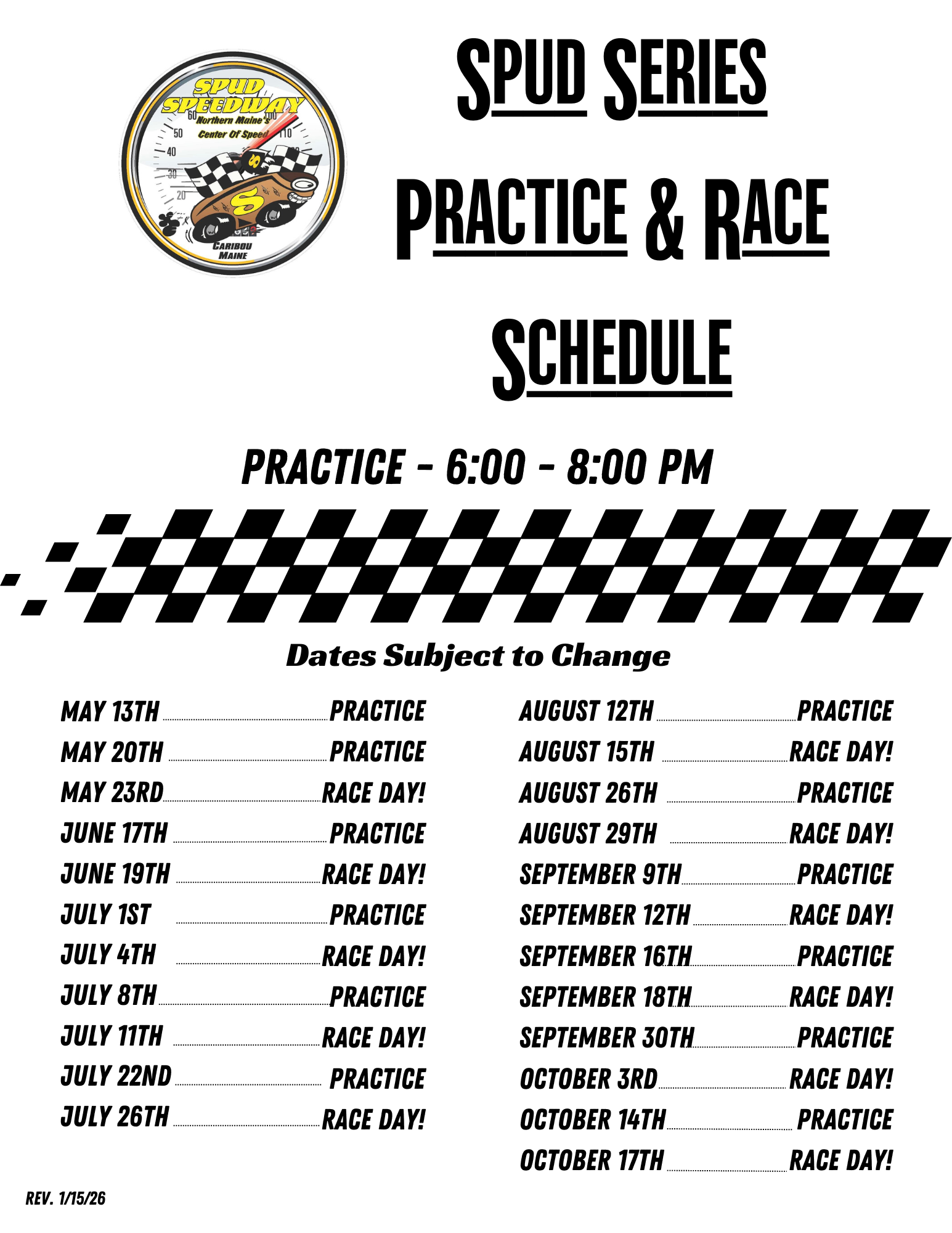 We’re fired up and ready to roll into what’s shaping up to be an electrifying, action-packed season! As race day approaches, we want everyone geared up and in the know. Be sure to check out the Spud Speedway 2026 Track Rules—there are important updates this year that you won’t want to miss. Let’s make sure everyone is race-ready and dialed in before those engines roar to life!