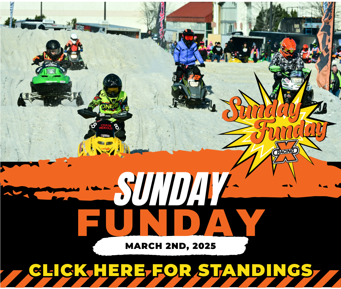Sunday Funday by X Racing is the ultimate way to wrap up your weekend with an action-packed day of snowmobile racing and fun! Join X Racing for a laid-back yet thrilling event featuring exciting races, friendly competition, and a great atmosphere for all snowmobile enthusiasts. Whether you're a racer or a spectator, Sunday Funday promises an unforgettable time with high-energy action and a vibrant community vibe. Don’t miss out on this perfect way to enjoy the weekend!